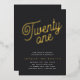 Invitación Con Relieve Metalizado Fiesta de Golden Script 21st Birthday