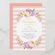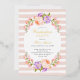 Invitación Con Relieve Metalizado Fiesta de Graduación Blush Stripe and Bloom