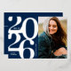 Invitación Con Relieve Metalizado Fiesta de Graduación de Fotos 2026 Azul Marino Pla