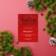 Invitación de Navidad elegante de días festivos. Cuenta con auténtico foil dorado, brillo rojo y diseño moderno con texto de caligrafía.