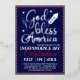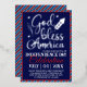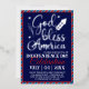 Personaliza esta atractiva invitación de fiesta del cuatro de julio con papel de aluminio y envíalas a familiares y amigos para una celebración del Día de la Independencia. Dios Bendiga América está en elegante letra cursiva y es de papel de aluminio plateado real para darle un aspecto único y brillante.