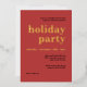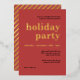 La combinación perfecta de lo retro y lo moderno, esta sencilla y minimalista invitación a una fiesta corporativa utiliza el moderno estilo funda para transmitir los detalles de su evento con un toque moderno. El fondo retro rojo con un verdadero acento de texto de Relieve metalizado dorado es una combinación atractiva y añade un toque festivo al diseño sencillo. La parte de atrás de la invitación tiene rayas de caña de caramelo a juego con el rojo y el oro retro.