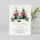 Invite a sus invitados de fiesta de vacaciones con estilo, ya sean familiares, amigos o compañeros de trabajo - este diseño funciona para eventos casuales o corporativos! El diseño cuenta con un ilustracion acuático de tres pinos decorados con estrellas doradas. Los detalles de su evento aparecen a continuación con "Fiesta de Navidades" en letras de oro de moda.
