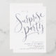 La moderna invitación sorpresa de fiesta incluye elegante caligrafía, guión sorpresa para fiestas y purpurinas en un Relieve metalizado plateado real, limpio y simple, gran sorpresa, invitación para adultos de cumpleaños para cualquier edad. El color de fondo azul polvoriento puede cambiarse a cualquier color que elija.