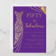 Invitación Con Relieve Metalizado Fifty & Fabulous Purple & Gold 50th Birthday