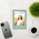 Esta elegante invitación de graduación e invitación incluye una sola foto con la palabra finalmente en Relieve metalizado plateado encima de ella sobre un fondo verde sabio. La parte posterior de la tarjeta puede utilizarse para una invitación o un mensaje personal.