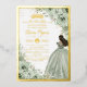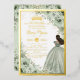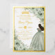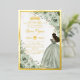 Personaliza esta elegante invitación de cumpleaños Quinceañera / Sweet 16 con foil de flores en verde salvia con facilidad y rapidez. Simplemente haz clic en el botón de personalizar para editar los textos, cambiar las fuentes y los colores de las fuentes. Cuenta con suaves flores de verde salvia pintadas a la acuarela, una niña vestida con un hermoso vestido de baile de color verde salvia y una corona de princesa dorada. ¡Perfecta para quinceañera, sweet sixteen, cumpleaños número 18, baile de debutante y muchas más ocasiones! Artículos coincidentes disponibles en la tienda. (c) Somerset Fine Paperie