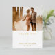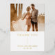 Tarjeta de agradecimiento contemporánea y moderna del boda de Relieve metalizado que incluye un diseño sencillo y mínimo con "Gracias" junto con sus nombres y fecha boda en tipografía en negrita debajo de su foto favorita. La parte posterior tiene una segunda imagen, su monograma inicial y su mensaje personalizado. Esta minimalista tarjeta de agradecimiento de boda tipográfico muestra todo el texto en el frente en Relieve metalizado real.