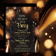 Invitación Con Relieve Metalizado Fireworks Black Gold New Years Eve Party