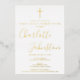 Invitación Con Relieve Metalizado Firma Script First Holy Communition Gold