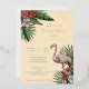 Invitación Con Relieve Metalizado Flamingo Floral Tropical Amarillo Ducha Nodal Oro