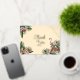 Esta elegante tarjeta hawaiana de agradecimiento con Relieve metalizado dorado cuenta con ilustraciones con tema de flamingo tropical hawaiano dibujados a mano con tinta negra, exhibiendo flamencos rosas, hibiscos y flores jazmín, una piña y hojas tropicales. En la parte posterior aparece un mensaje personal de agradecimiento de la futura novia. Elegante fondo amarillo.