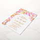 Con hermosos tonos rosa, violeta, amarillo y naranja, estas invitaciones florales a las bodas acuáticas son impresionantes para el boda moderno. Los detalles del Relieve metalizado y el tipo de letra de caligrafía hacen que estas invitaciones sean atemporales y elegantes. Encuentra artículos coincidentes en mi tienda.
