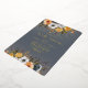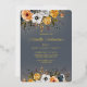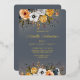 Elegante invitación para la fiesta de cumpleaños número 80 para ella con hermosas flores de color azul y amarillo mostaza y letras de Relieve metalizado oro reales. Comuníquese conmigo para obtener ayuda con sus personalizaciones o para solicitar la correspondencia o coordinación de los productos de Zazzle.