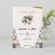 Invitación al Relieve metalizado Boda simple con Floral azul