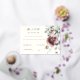 Las acuarelas delgadas son elementos de flores de invierno, como la hidrangea rosa, las amapolas y el follaje verde. Versiones sutiles de colores estacionales clásicos. Monogramas, nombres y fecha en reverso en letras marrones. Todo el texto es personalizable, así como también se le da una plantilla para la personalización. Las elegantes fuentes caligráficas y las series clásicas crean un ambiente cálido y personal. Acentos de Relieve metalizado botánico. Creado en una tarjeta acentuada de Relieve metalizado real.