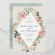 Una hermosa invitación a una boda floral con acuarela en suave marfil pastel, verde sabio y rosa rubor con un borde geométrico subió de Relieve metalizado dorado.