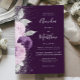 Invitación Con Relieve Metalizado Floral Deep Purple Silver Glitter Wedding