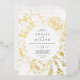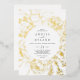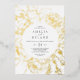 Este Relieve metalizado dorado con flores doradas, una invitación al Relieve metalizado boda informal, es perfecto para una boda elegante. El diseño moderno del boho presenta un arreglo caprichoso de flores, hojas y botánicos dibujados a mano en Relieve metalizado dorado.