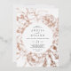 Este Relieve metalizado dorado con rosa dorado y de oro, una invitación al Relieve metalizado boda casual, es perfecto para una boda elegante. El diseño moderno del boho presenta un arreglo caprichoso de flores, hojas y botánicos dibujados a mano en Relieve metalizado de oro rosa.