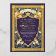 Invitación Con Relieve Metalizado Floral Fantasy Swords Shield Monogram Wedding