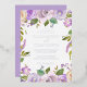 Invitación a la Boda Morada floral con un borde de flores de acuarela pintadas en tonos violeta pastel, lavanda, lila y marfil. Los detalles de tu evento están en un Relieve metalizado plateado real. Esta elegante invitación a la boda es perfecta para un boda de primavera o verano.