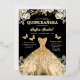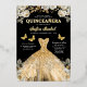 Invitación Con Relieve Metalizado Floral Gold Black Butterfly Princess Quinceanera