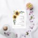 Crea una moderna tarjeta de invitación a la Boda Floral de Girasol con esta bonita plantilla con un bonito ramo rústico floral, marco geométrico de oro, con tipografía moderna. CONSEJO: En la colección que aparece a continuación se pueden encontrar tarjetas de suite boda como RSVP, programas de boda, carteles, tapiz, etiquetas de regalo, carteles y otros agujeros y artículos de boda.
