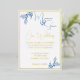 Invitación Con Relieve Metalizado Floral Pastel Azul Boda Oro