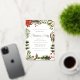 Decorada con exuberante vegetación y un toque de magia de temporada, esta invitación marca la pauta para una memorable celebración de Navidades. Su intrincado diseño botánico despierta una sensación de calidez y unión, lo que lo hace ideal para reunirse con sus seres queridos durante la época más maravillosa del año. Con la opción de personalizar del texto y de los detalles, puede hacer que esta invitación sea exclusivamente suya, asegurándose de que su fiesta Navidad sea una que sea apreciada por todos los que asistan. Invite a sus huéspedes con estilo con esta impresionante invitación a las acuarelas botánicas, y deje que comiencen las festividades.
