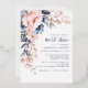 Invitación Con Relieve Metalizado Floral Rosa Botánica Bridal Shower Plata