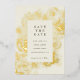 Un bonito y clásico salven la fecha con cremas y elementos de Relieve metalizado dorado. Ideal para una boda formal y elegante con un toque vintage.