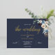 Invitación Con Relieve Metalizado Flores azules Boho Hojas secas Relieve metalizado