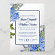 Invitación Con Relieve Metalizado Flores azules de Delfino cambio de lugar boda