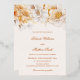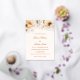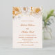 Esta invitación a la boda exuda elegancia atemporal con su diseño suave y romántico. La parte superior está decorada con delicados florales de colores acuáticos en tonos cálidos de marfil, blanco, amarillo y Relieve metalizado dorado que crean un marco suave y elegante. El diseño es limpio y equilibrado, con una combinación armoniosa de fuentes sans serif clásicas y un guión elegante escrito a mano utilizado para los nombres de novias y novios, añadiendo un toque personal y sofisticado. La estética general es refinada y romántica, perfecta para una celebración formal o con temática de jardín.