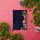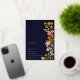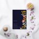 Elegante y moderno ilustracion de flores de otoño en rojo, verde, naranja y verde azulado guión ducha de novia con una moderna tipografía de caligrafía sobre azul marino oscuro editable con verdadero Relieve metalizado de oro.