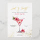 Invitación Con Relieve Metalizado Flores rosas y cócteles Invitación al Relieve meta