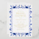 Invitación Con Relieve Metalizado Flores Royal Blue Bridal Shower Gold