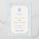 Give your wedding invitations a stunning shine with real gold, silver, or rose gold foil! This whimsical wedding invitation features a real foil hand-drawn frame against a light blue striped background. At the top of the invite, there is a doodle scribble illustration of a diamond ring in a seashell ring box. The details follow with the couple's names in charming foil-pressed script lettering. Ideal for summer, Italian, beach, yacht, and coastal wedding themes. Cards reverse to an engagement photo of your choice. Edit most wording and text colors to make this sweet wedding invite fit your event needs and personal style. View the collection linked on this page for the full wedding suite or visit our store for more wedding invitations.