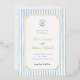 Invitación Con Relieve Metalizado Foil Whimsical Retro Blue Stripes Wedding