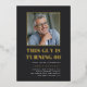 Celebra su cumpleaños con estas invitaciones festivas que incluyen "este tipo cumple 60 años" en letras de Relieve metalizado dorado y una foto favorita esbozada en oro. Personalice con los detalles de su fiesta debajo.