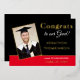 Relieve metalizado dorado de Invitación Grad 2025 Foto Red Black. Un toque de clase con verdadero Relieve metalizado en oro para el encabezado en la parte superior, año y nombre de los graduados, junto con rojo y negro negrita. Personalice fácilmente el texto en ambos lados y reemplace la imagen de ejemplo con la suya propia.