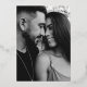 Anuncie su próximo boda con estilo con nuestra Minimalista foto de caligrafía, guarde las fechas. El elegante guardar las tarjetas de fecha incluye las palabras "Guardar la fecha" en un guión de Relieve metalizado dorado con sus nombres, fecha de boda y ubicación que se muestra abajo en un fondo negro. En la parte posterior de guardar las fechas se muestra su foto de compromiso favorita.