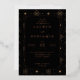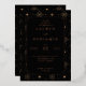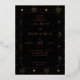 Esta elegante invitación de boda presenta una sofisticada paleta de colores en negro y dorado, creando una atmósfera lujosa y festiva. El diseño muestra una disposición simétrica con elementos decorativos como estrellas y fuegos artificiales que enmarcan el bloque de texto central, realzando su ambiente de celebración. Con líneas limpias y colores planos, combina la estética moderna con el encanto clásico, lo que la hace perfecta para eventos formales. La tipografía se elige cuidadosamente para enfatizar los detalles clave y mantener la legibilidad, lo que garantiza que su día especial se comunique con claridad y estilo. Ideal para bodas, esta invitación marca el tono para una celebración inolvidable.