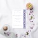 Trae un toque de diversión geeky a tu evento con esta invitación matrimonial con un borde púrpura de lavanda pastel en el lado derecho, decorado con un patrón de tubos de ensayo, hebras de ADN, panaderos, modelos planetarios del átomo y moléculas de cafeína impresas en Relieve metalizado real. El lado izquierdo de la tarjeta tiene mucho espacio para todos los detalles de tu evento de temática científica con algún texto de ejemplo en el lugar que se puede personalizar para que se ajuste a tus necesidades. Un gran modelo atómico de lavanda termina las cosas en la parte de atrás para crear una bonita nota final. Esta invitación coincidirá con cualquier otro producto de Fuerzas atractivas en Lavender para que pueda realizar fácilmente su evento tan coordinado como desee.