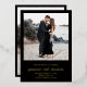 Boda moderna en negro y oro salva la tarjeta de fecha con un diseño mínimo con tu foto favorita. A continuación se muestran los detalles del evento en una combinación de tipos de letra sans serif simples y un guión elegante impreso en Relieve metalizado real. Esta moda, salvo la fecha, sería genial para un gótico con tema o boda de Halloween.