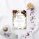 Invitación Con Relieve Metalizado Glam Burgundy Partido de Compromiso Floral Rosa