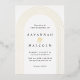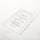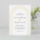 Invitaciones de boda modernas de estilo minimalista con un delgado arco metálico alineado con los detalles de la ceremonia. Blanco con Relieve metalizado dorado.