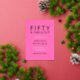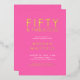 Gold Foil on Hot Pink Fifty and Fabulous Modern Minimal 50th birthday invitation that you can personalize and send out for your fiftieth birthday party celebration. The words "Fifty and Fabulous" are set using trending bold font typography. Text colors can be changed using the edit menu.