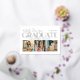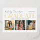 Celebrate your graduate with this elegant graduation party invitation featuring "Graduate" in gold foil alongside a three-photo collage on a clean white background. The back displays "Grad Party" event details in a sophisticated black serif and script typography pairing. All text is fully customizable, including the graduate's name, school, and event details.